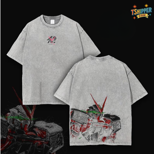 Gundam Sazabi Vintage Washed Oversized Tee – Red Mobile Suit Graphic T-Shirt