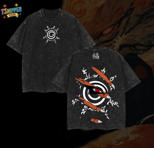 Kurama Jinchuriki Vintage Acid Wash Oversized Tee