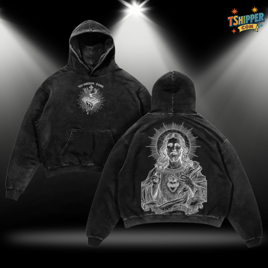 Sacred Heart Jesus – Vintage Washed Christian Oversized Tee / Hoodie