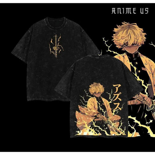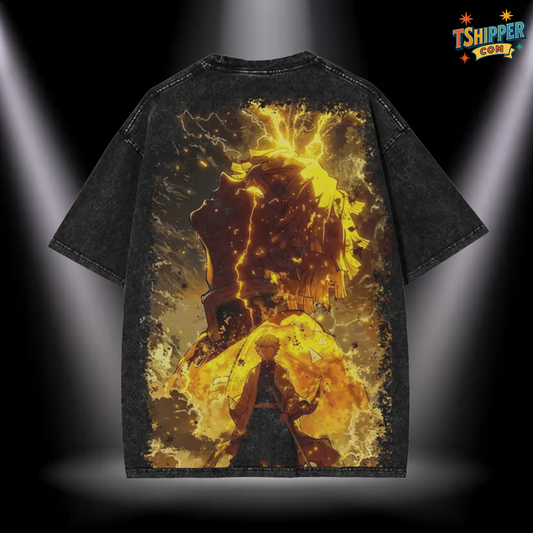Zenitsu Agatsuma Thunder Breathing Vintage Washed Oversized Tee